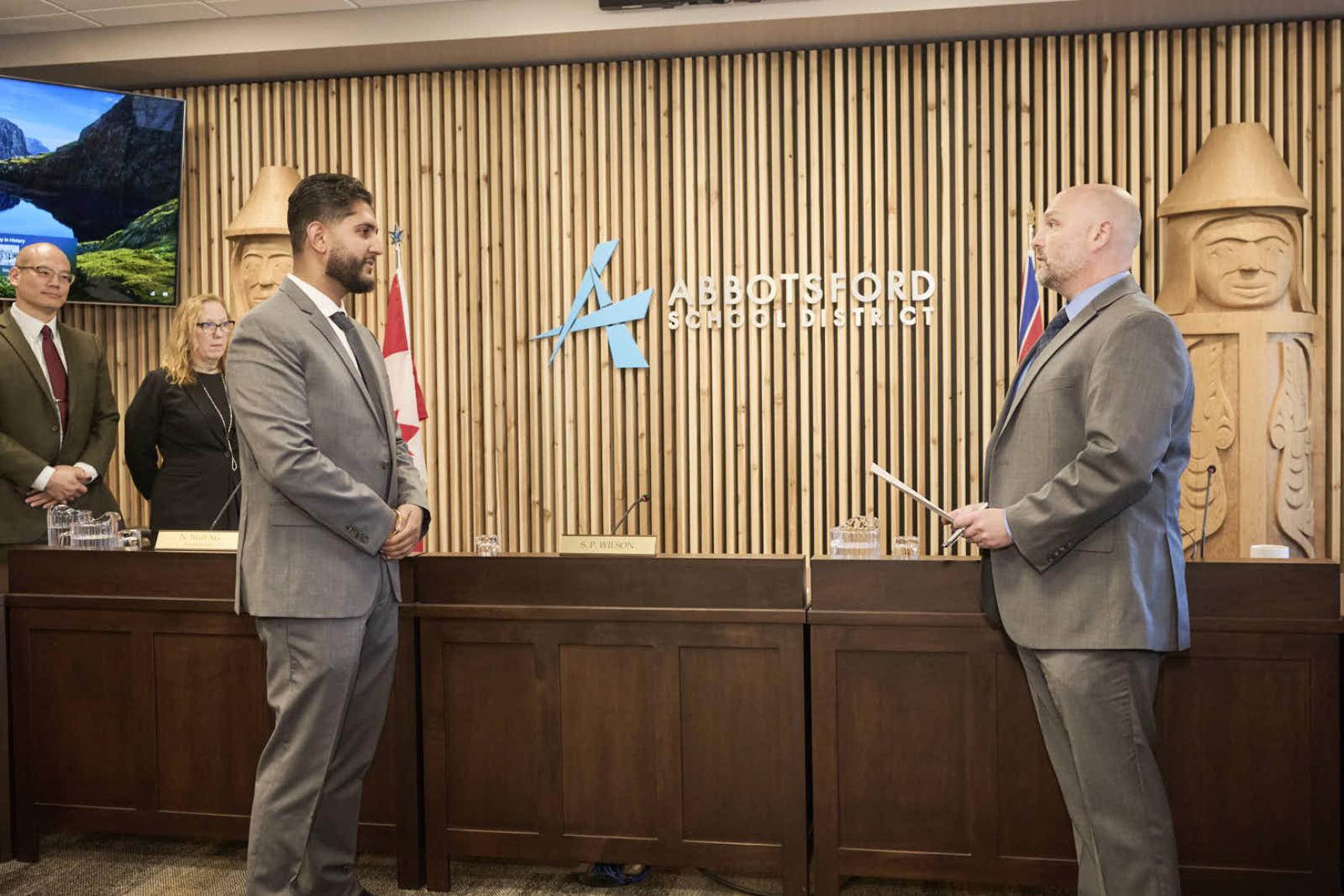 The Abbotsford Board of Education is pleased to welcome Arsh Kaler as its newest member, following his official swearing-in at the public Board meeting held on Tuesday, October 21, 2025.